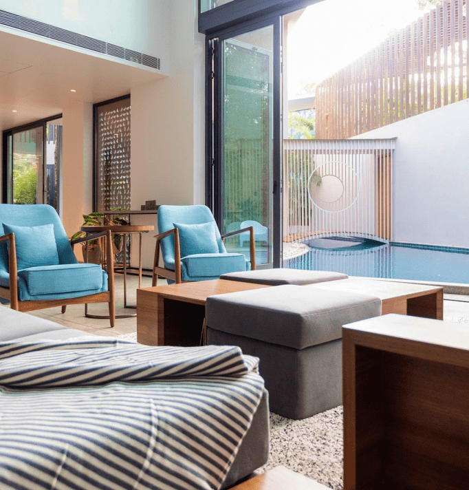Lua reflects the tranquility of the Moon with its combination of Slate and Granite embellishments. The house has seamless inside-outside spaces that allow different activities to naturally flow to appropriate portions of the house.